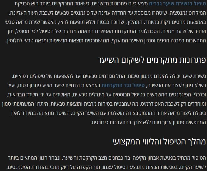 מיקרופיגמנטציה בזקן הדמיית שיער בזקן הפכה לטרנד פופולרי יותר ויותר בקרב גברים המבקשים לשפר את מראה הפנים שלהם. טכניקה חדשנית זו כוללת יישום מדויק של פיגמנטים על קרא עוד >>