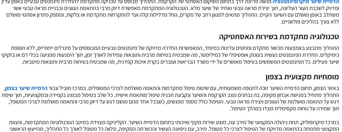 הדמיית שיער לנשים הדמיית שיער לנשים – רק עם מיקרופוליק הדמיית שיער לנשים נעשית כדי למלא קרחות קיימות ו/או להסוות צלקות. הן חייבות לקחת בחשבון כי המראה הנוצר קרא עוד >>