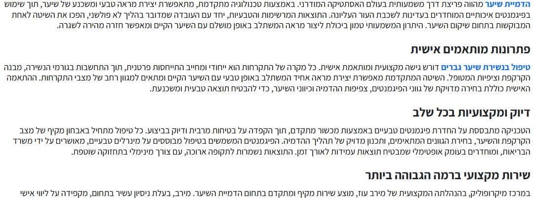 הדמיית שיער בקריות הדמיית שיער בקריות – מיקרופוליק הדמיית שיער בקריות נועדה לצבוע קרחת על קרקפת, להסתרת צלקות וכדומה. הפרוצדורה מאופיינת בהחדרת פיגמנטים טבעיים לתוך שכבת העור העליונה קרא עוד >>